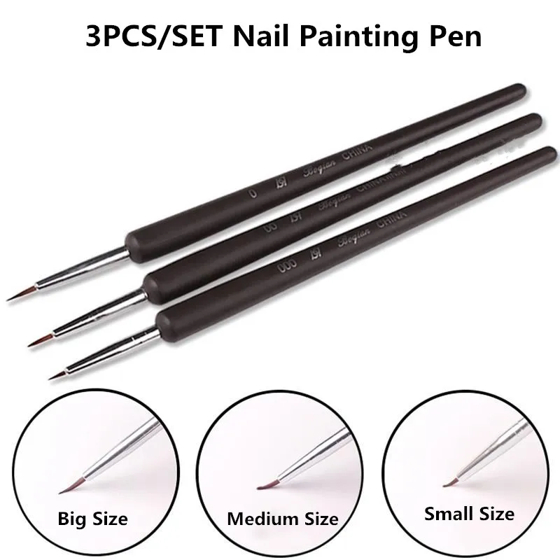 3pcs/set Nail Art Pencil Drawing Line Pen Dotting Kit black Fine Plastic Paint Tool Manicure